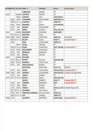 Liste non exhausive des anciens décédés .. A compléter en fonction des connaisances apportées par les anciens
