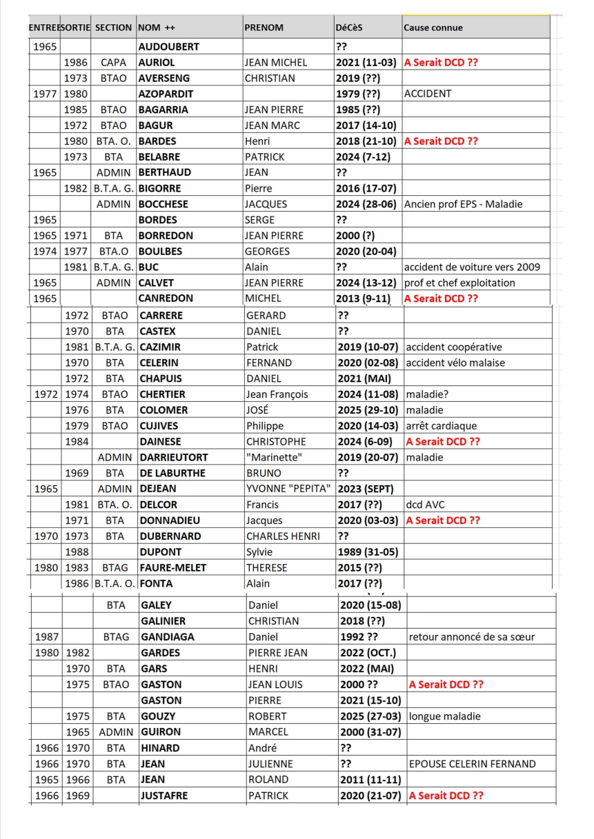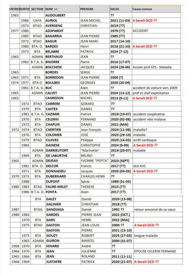 Les Anciens disparus du Lycée (mise à jour 4 Novembre 2025)