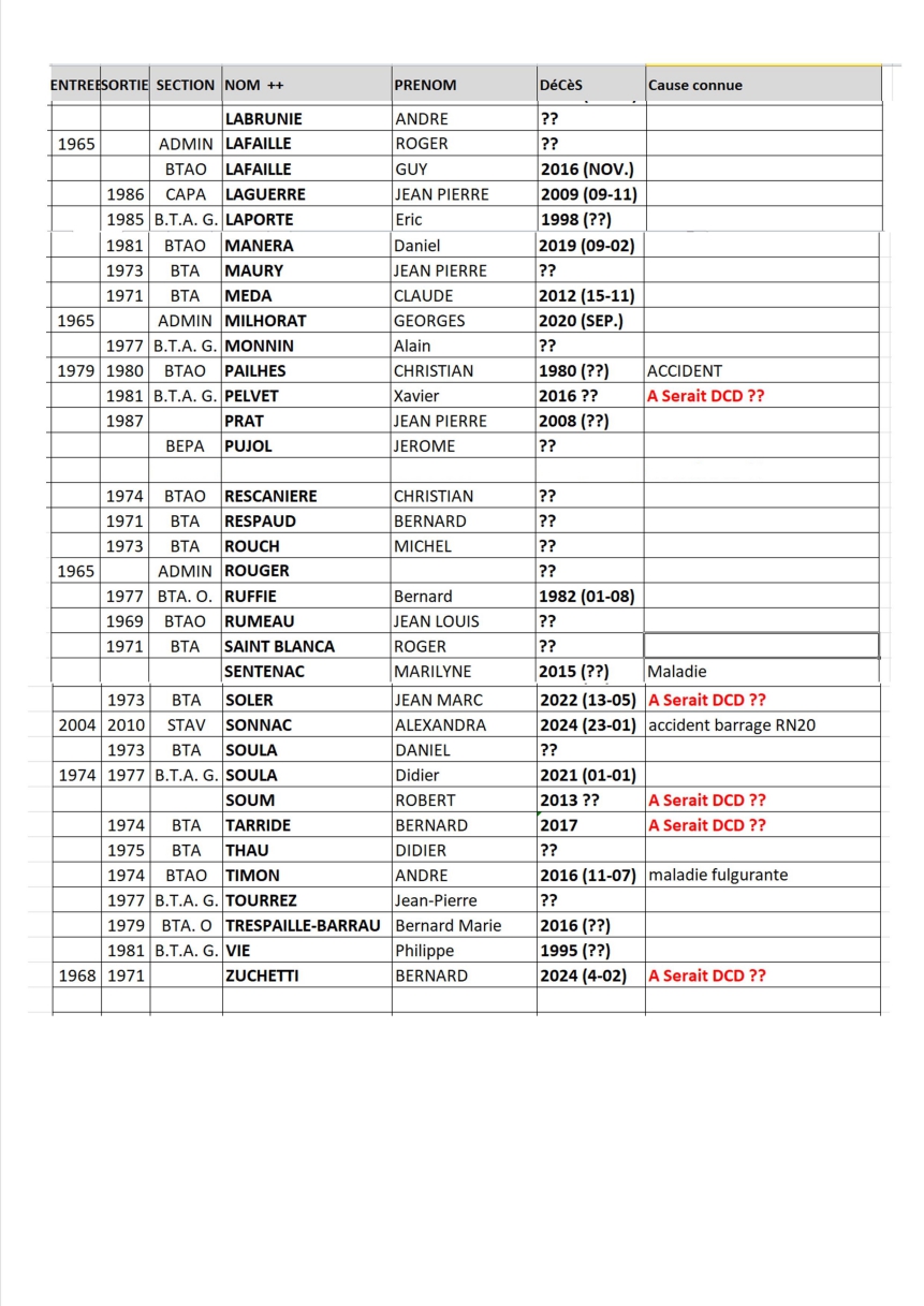 Liste non exhausive des anciens décédés .. A compléter en fonction des connaisances apportées par les anciens
